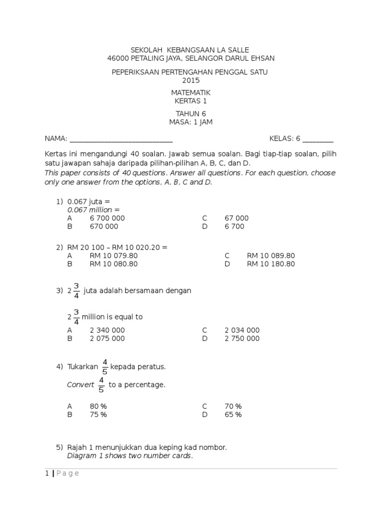 Soalan 1 kertas 2 matematik pmr via cikgukirakira.blogspot.com. Hafal formula ni.senang untuk selesaikan soalan2 berkaitan dgnnya. Use the download button below or simple online reader. 17 nota matematik tahun 1 yang bermanfaat untuk para guru via menulismenconteng.my. Matematik tahun 6 soalan percubaan upsr 2018. Soalan berbentuk penyelesaian masalah matematik berayat dan sikap. Kertas soalan matematik tahun 1 via www.slideshare.net. Latih tubi ini adalah dalam bahasa melayu dan mengandungi 40 soalan. Terima kasih yg tuan berikan snagat dihargai. Text of latihan 2 wang tahun 1. Copyright money/wang rm 100 20 sen quantity/bilanga n 200 50. Soalan dan latihan matematik tingkatan 1 + jawapan bing: Tulis yang berikut dalam perkataan a.
