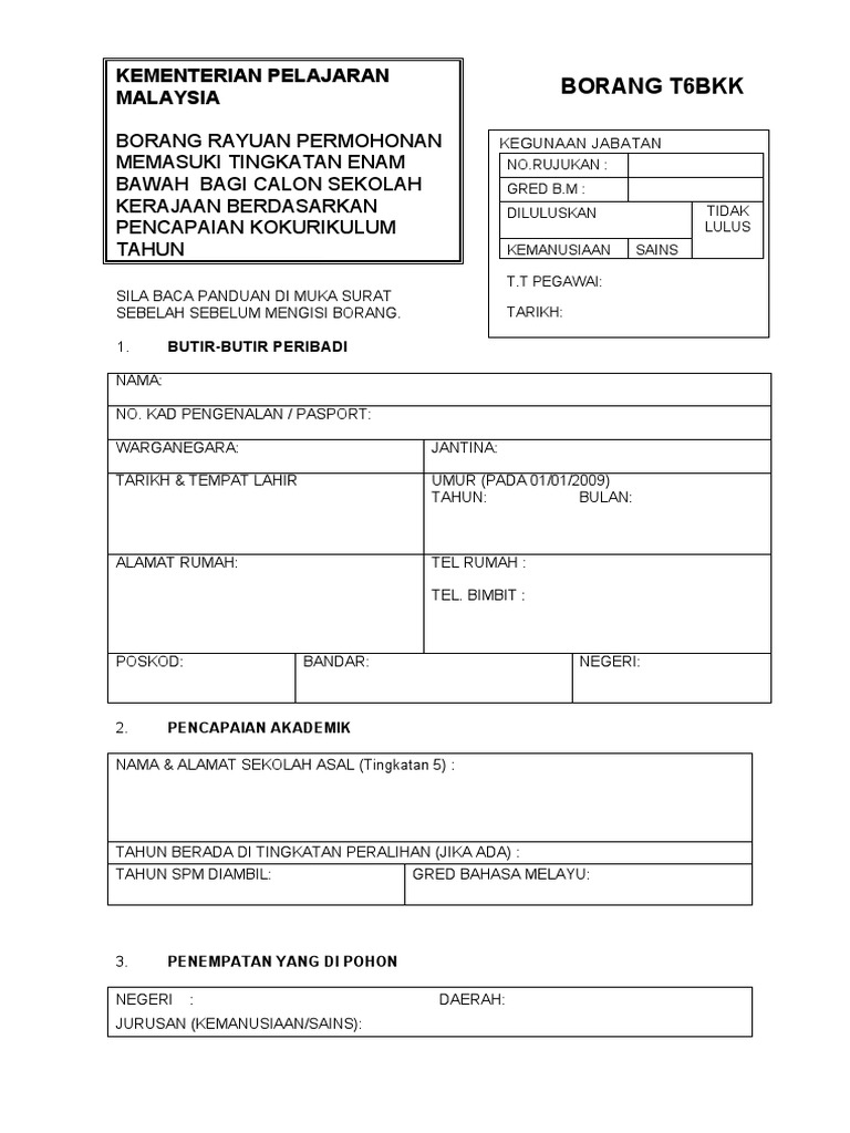 Related : Semakan Tawaran Form 6 - Untuk makluman, pelajar tidak perlu membuat permohonan kemasukan ke tingkatan 6 di sekolah menengah bantuan penuh kerajaan..