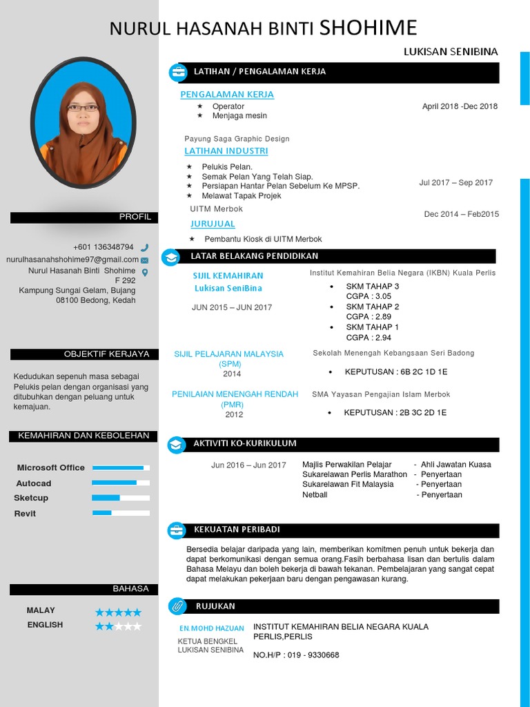 Contoh Resume Terbaik Cv Untuk Mohon Kerja Nadz My from nadz.my Kemahiran & kebolehan (skills & abilities) : Kedai runcit yang mencari juruwang memerlukan kemahiran yang segera dipromosikan dari bagger kepada juruwang berdasarkan kebolehan matematik dan pelanggan yang cemerlang. Apakah kemahiran terbaik untuk dimasukkan ke dalam resume anda? Ikuti tips penulisan resume internship dan contoh untuk rujukan para graduan. Apa yang perlu dimasukkan dalam surat resume dan surat penerima tunai. Pengisian maklumat di dalam sesebuah resume haruslah sessuai dan relevan. Adakah anda tahu perbezaan antara kemahiran keras dan kemahiran lembut ? Kemahiran dalam senarai itu harus ditulis dalam beberapa perkataan dan dalam mata peluru, seperti pakar dalam menutup jualan dan orang yang kemahiran lembut adalah yang tidak semestinya diajar dan ditakrifkan sebagai kebolehan semulajadi atau ciri peribadi seseorang, seperti pemecahan.